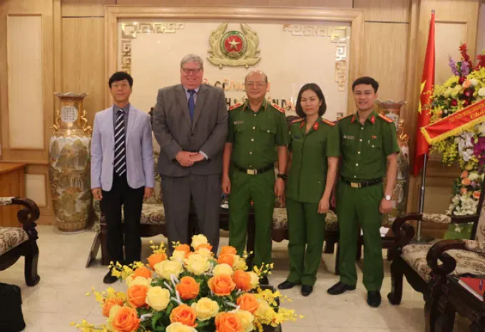 Tại buổi làm việc, Thiếu tướng, Phó Giám đốc Học viện đã gửi lời chào mừng của Trung tướng, GS.TS Nguyễn Xuân Yêm, Giám đốc Học viện đến đoàn, giới thiệu và đánh giá cao kết quả hợp tác tốt đẹp giữa Học viện CSND và Đại học Maryland, Hoa Kỳ trong triển khai thành công 02 khóa đào tạo liên kết thạc sỹ về tư pháp hình sự từ năm 2011 đến 2016.