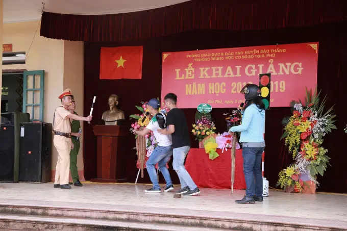Ngày 05/9, hòa chung trong không khí vui tươi của ngày toàn dân đưa trẻ đến trường, Đoàn cán bộ, học viên thực hành chính trị - xã hội của Học viện cảnh sát nhân dân đã phối hợp cùng Công an huyện Bảo Thắng tham dự lễ khai giảng, tổ chức tặng quà và tuyên truyền luật giao thông đường bộ cho học sinh Trường THCS số 1 Gia Phú, huyện Bảo Thắng, tỉnh Lào Cai